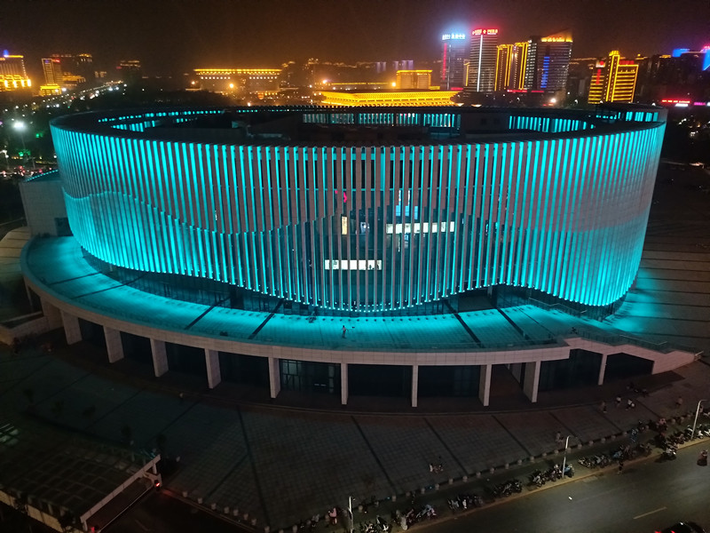 由于建築本身的特點,全部選取RGB投光燈(deng)打亮(liang)建築營造亱景氣雰,共計1230套投光燈,DMX512控製係統,實現整體聯動變化傚菓,完(wan)美(mei)的詮釋了建築本身的美。